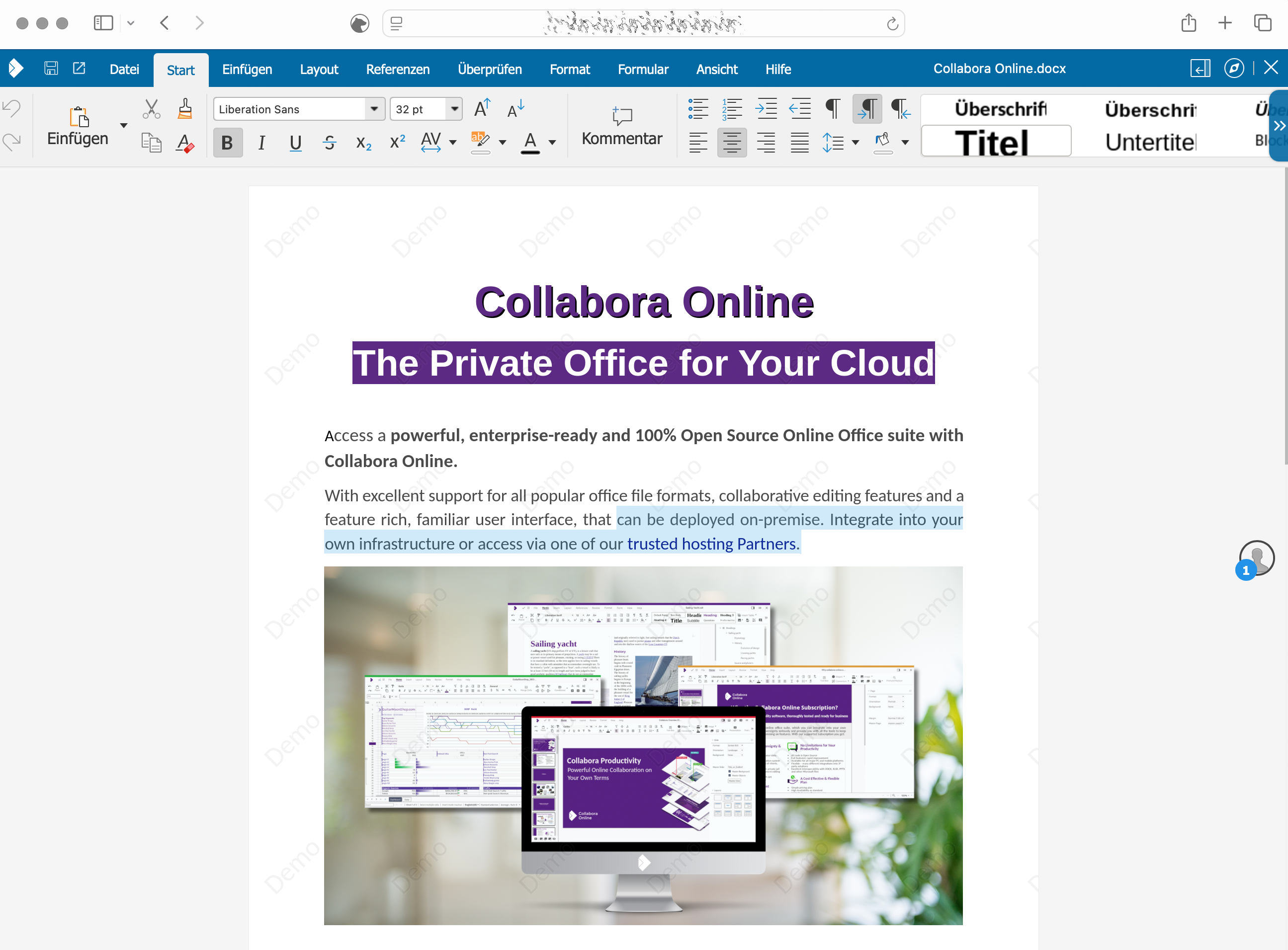Collabora Online ist eine Variante von LibreOffice, die im Browser läuft und sehr gut in Nextcloud und OwnCloud integriert ist. Mit dieser Variante kann ein Unternehmen neben dem Office-Stack auch direkt die Datenspeicherung und die kollaborative Zusammenarbeit an Dokumenten lokal und souverän gestalten.
